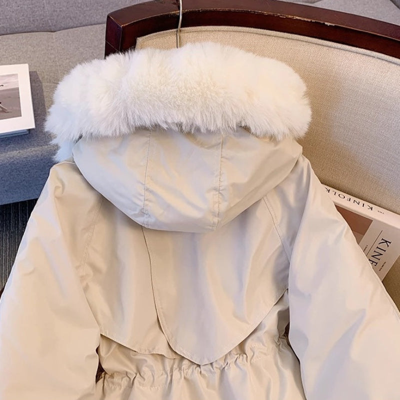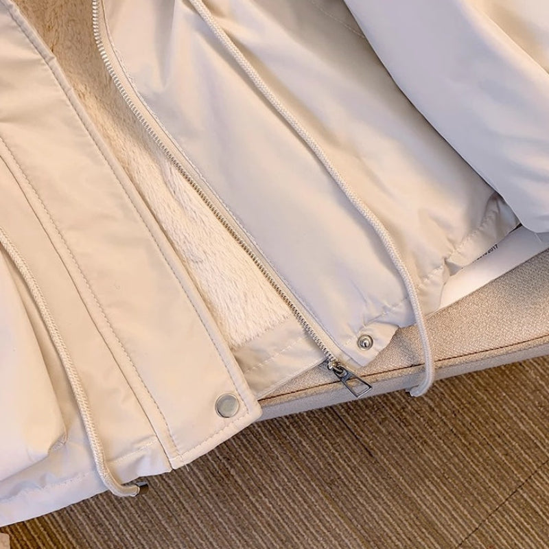 Fleece Lined Hood Down Jacket Winter Coat for Women Warm Drawstring Padded Parkas Korean Casua