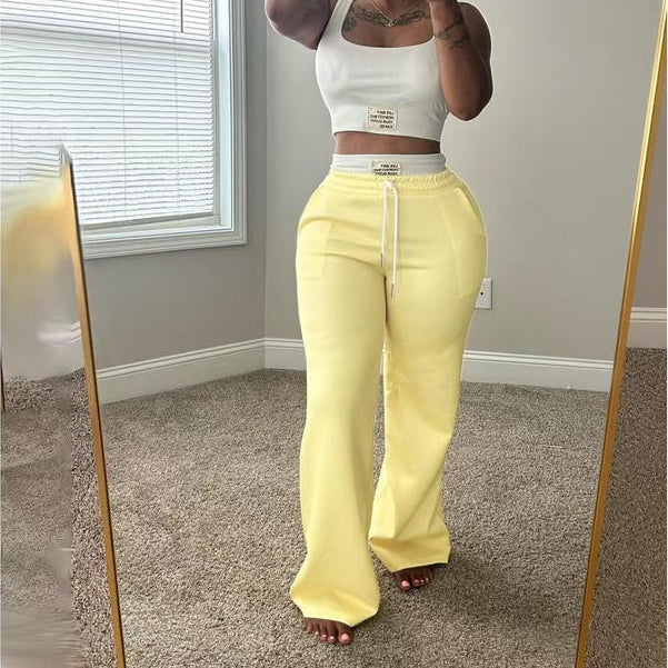 New Drop! Women's European-American Color-Blocked Double-Waistband Layered Loose Streetwear Athletic Casual Pants Two-Piece Set